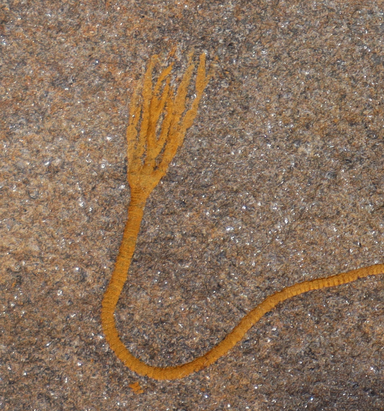 Kleines Matrixstück mit einer sehr gut erhaltenen Seelilienkrone mit Stiel.