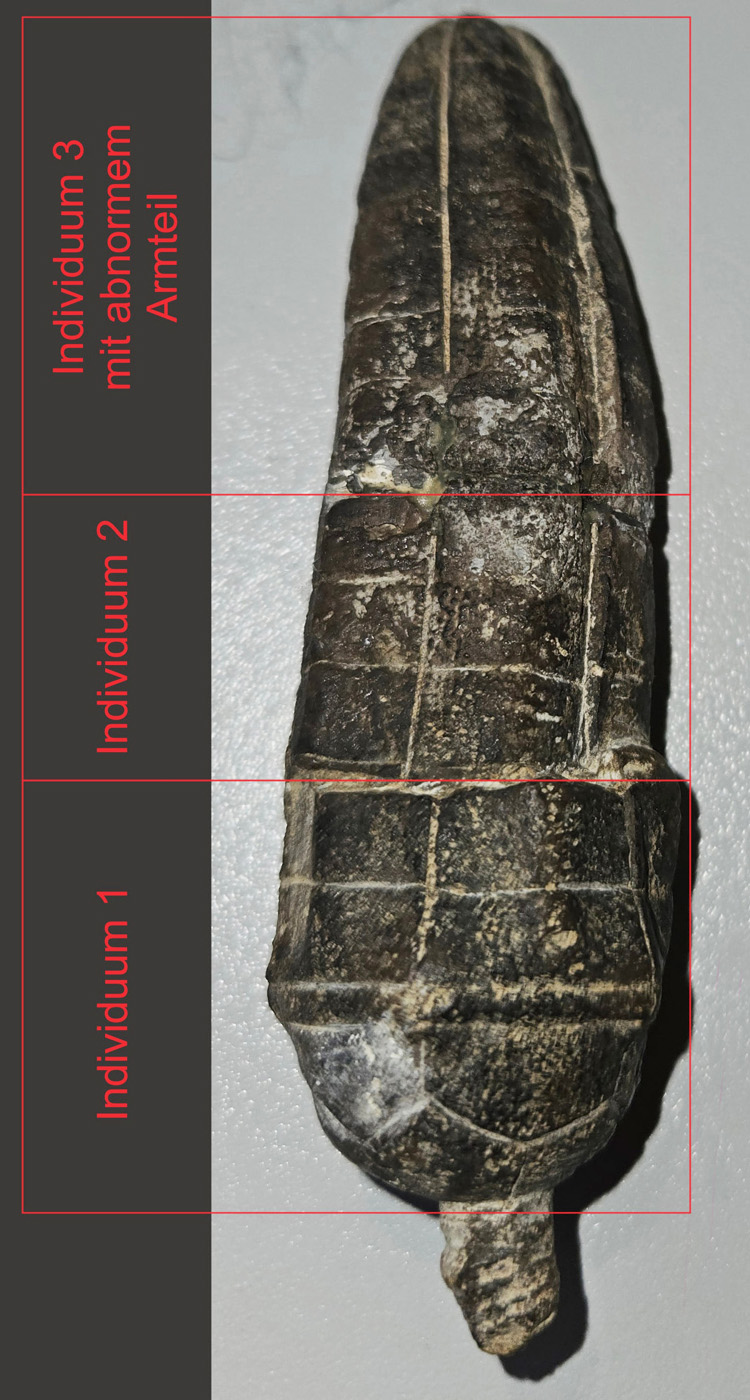 Sehr gut erhaltene, absolut seltene Crinoidenkrone mit einer Armanomalie.