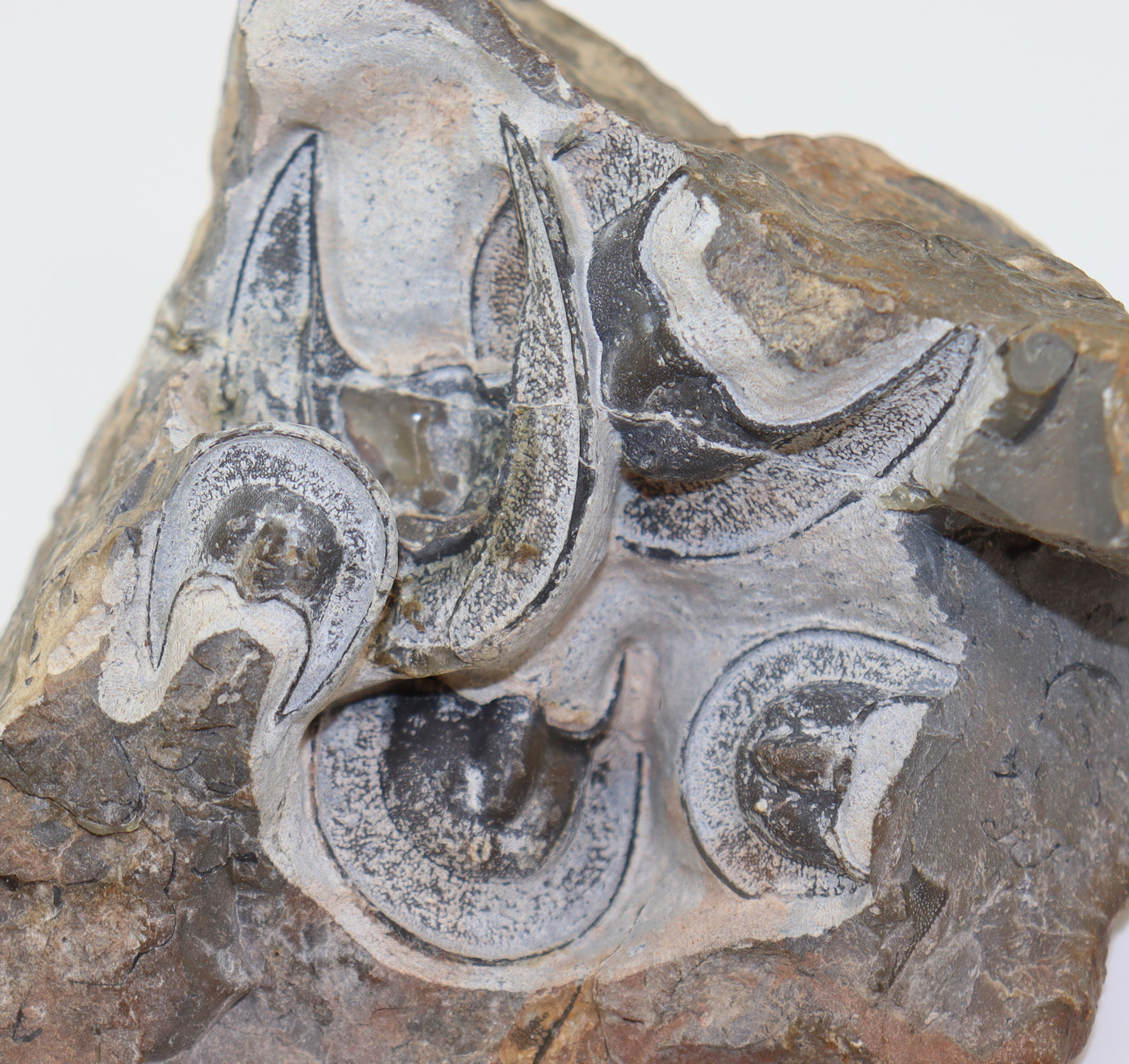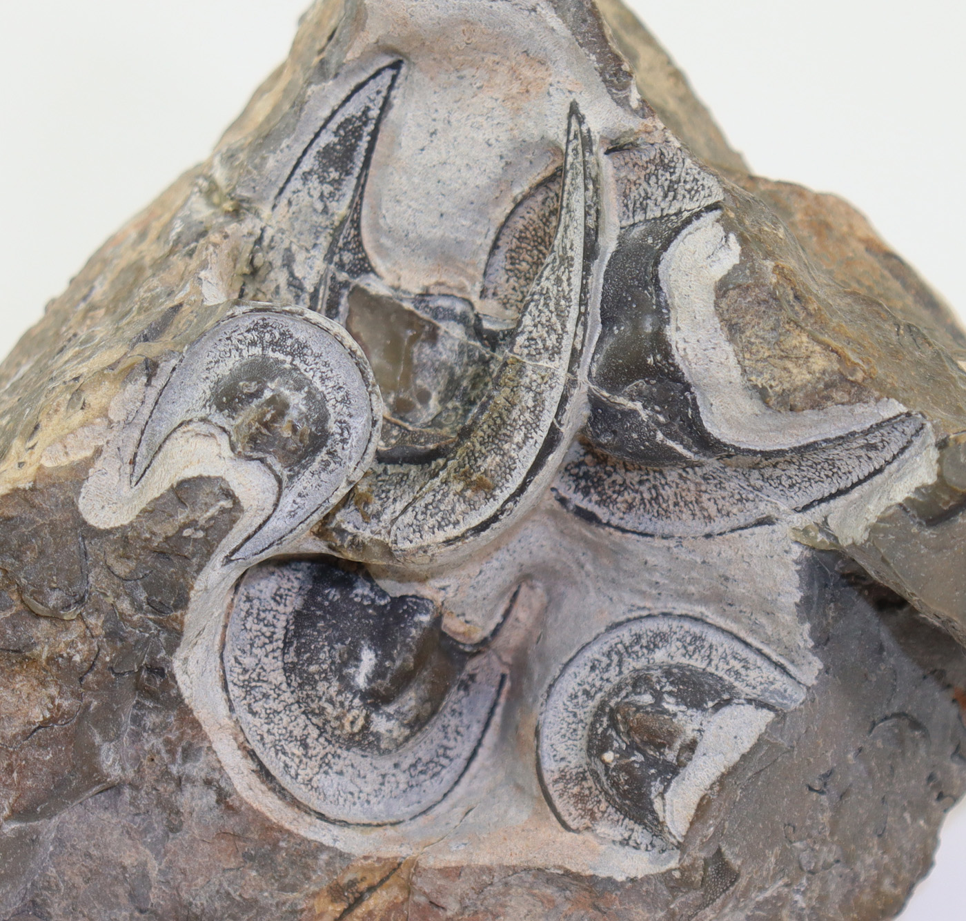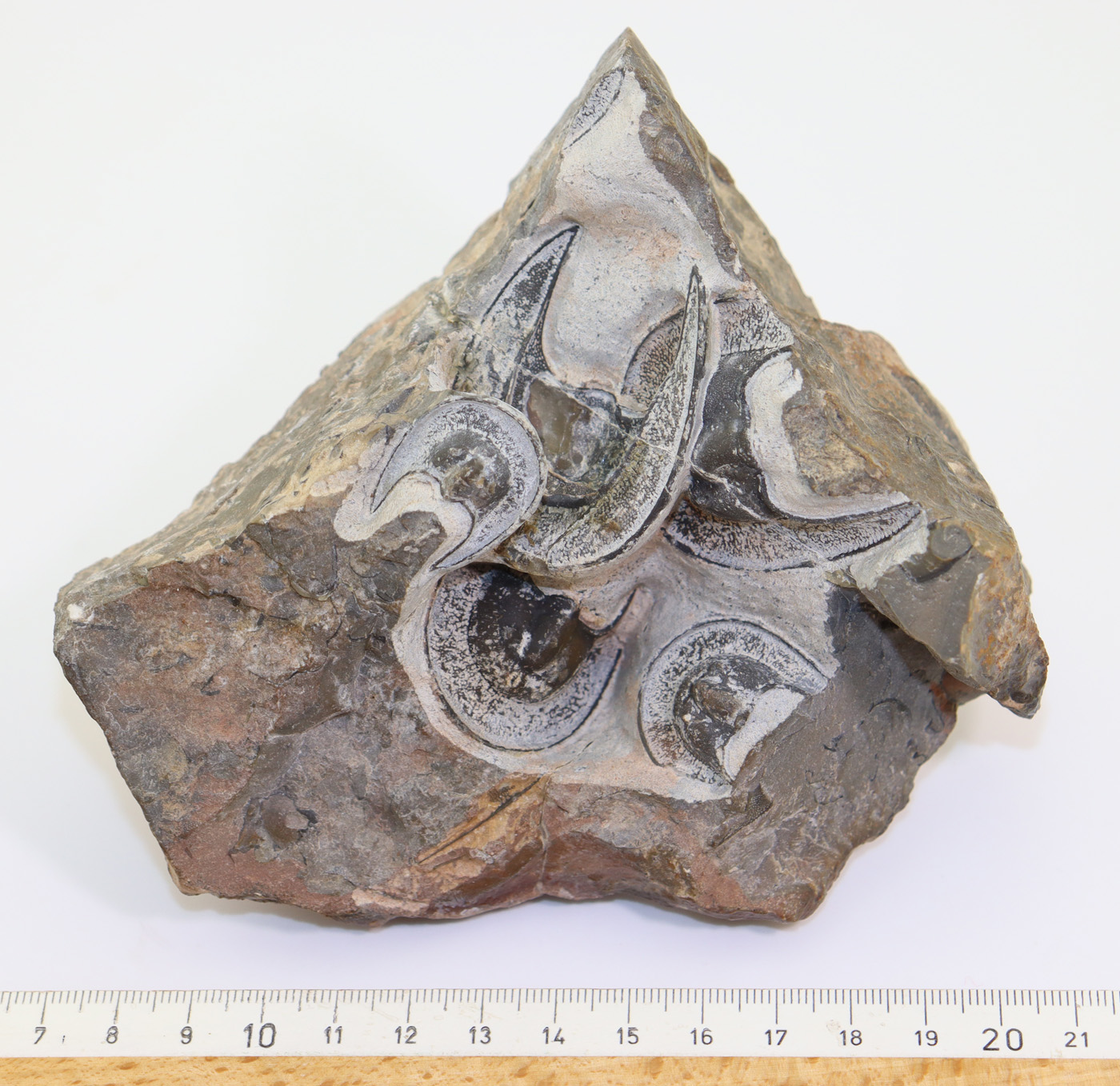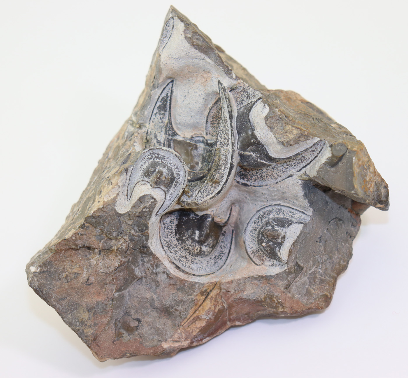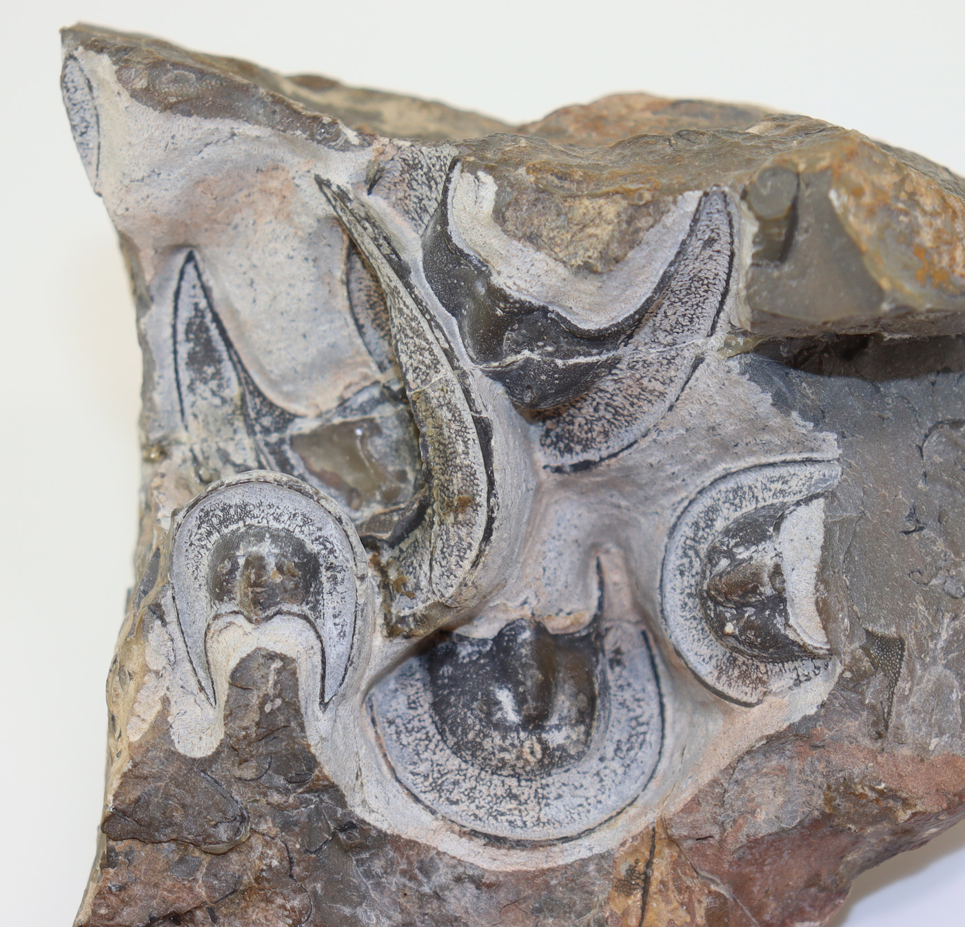 Schöne Stufe mit fünf Trilobitencephala in unterschiedlicher Grösse un Erhaltung.