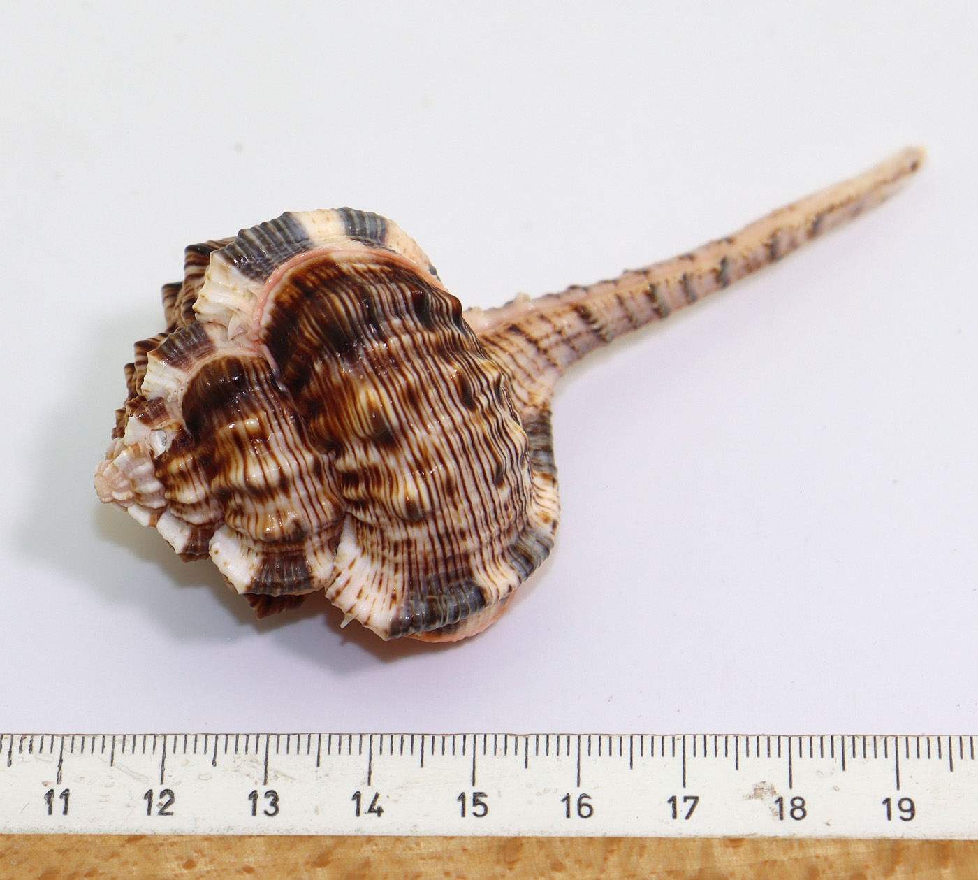 Sehr gut erhaltene Schnecke in ansprechender Grösse mit schön ausgeprägter Zeichnung.