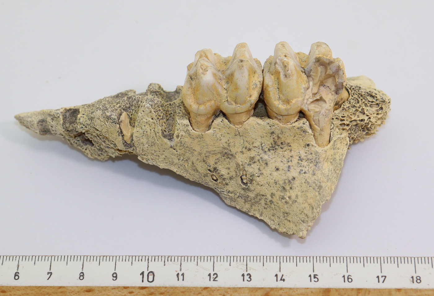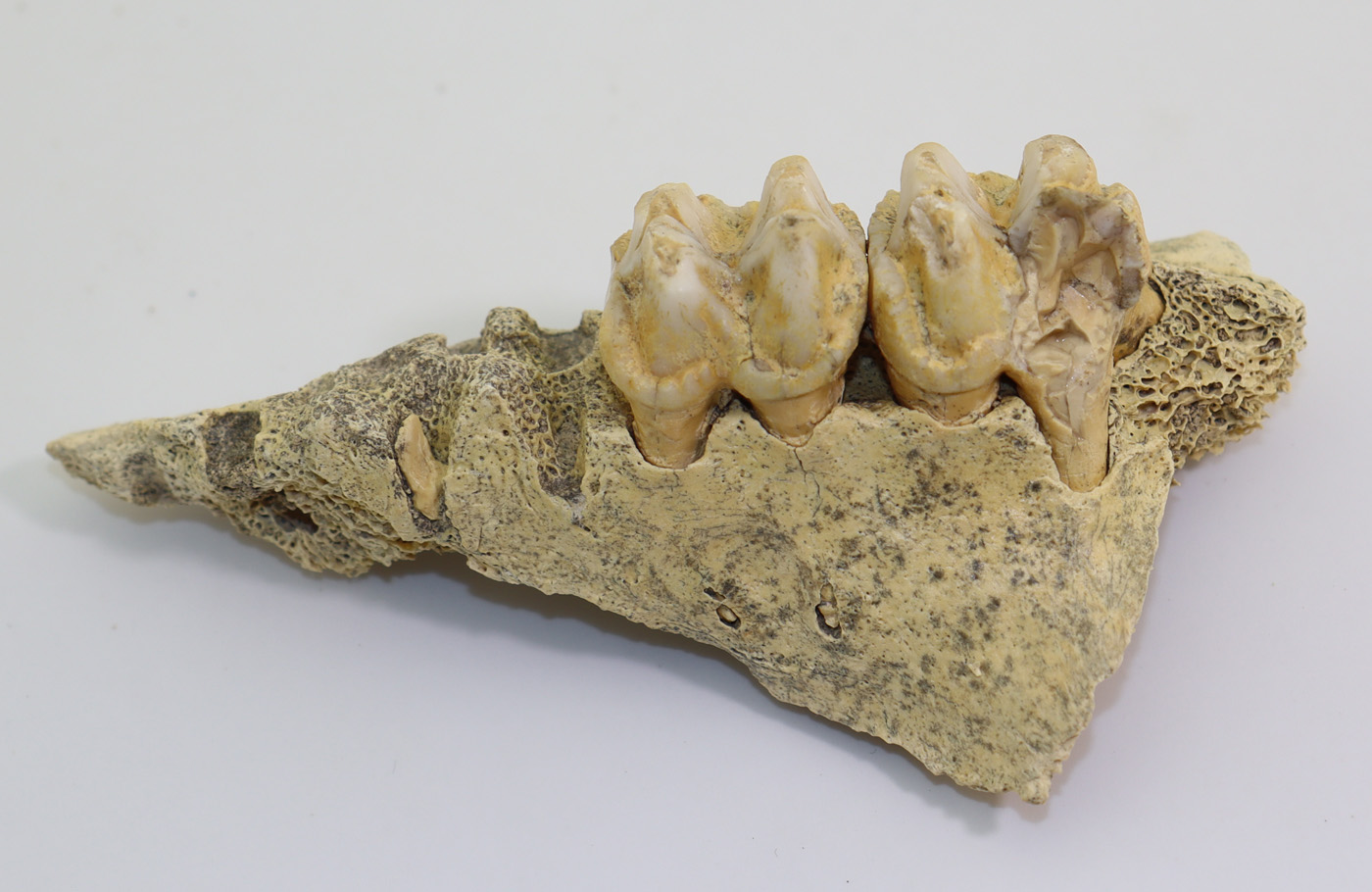 Sehr gut erhaltenes Oberkieferstück eines insularen Zwerg Nilpferdes mit guter Bezahnung.