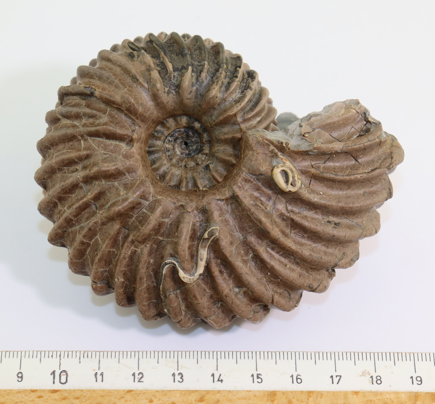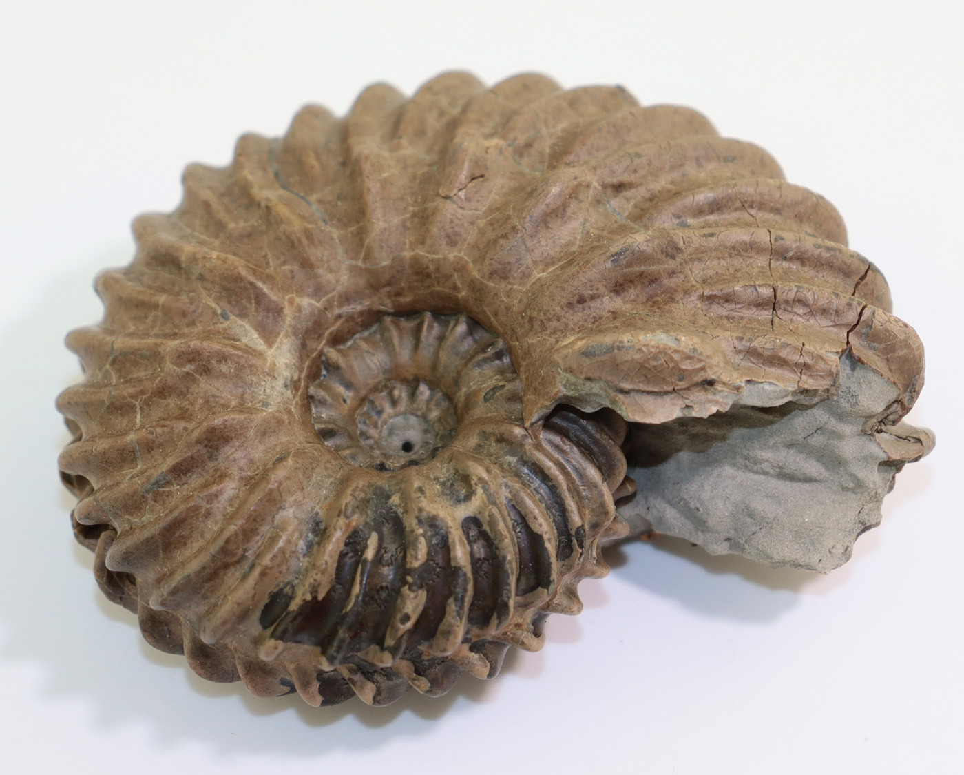 Sehr gut erhaltener, beidseitig präparierter Ammonit in ansprechneder Grösse.