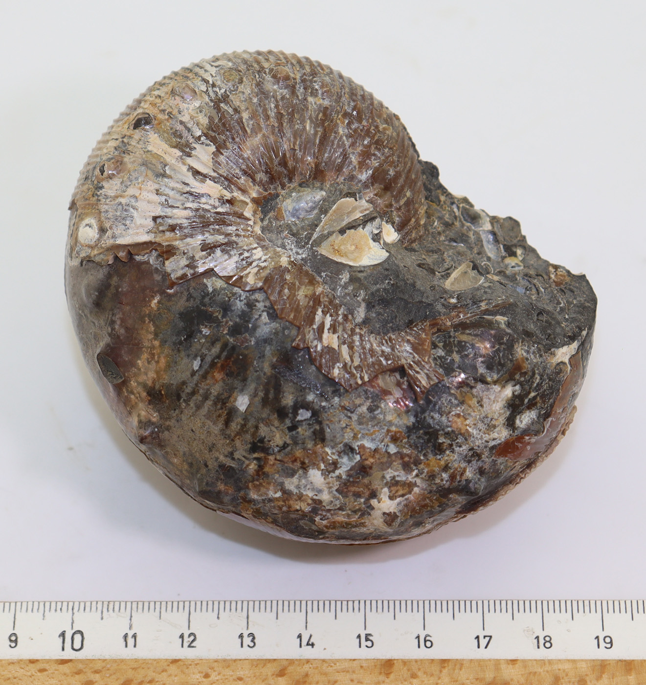 Optisch sehr ansprechender, sehr gut erhalter, extrem grosser Scaphites von einer klassichen Fundstelle.