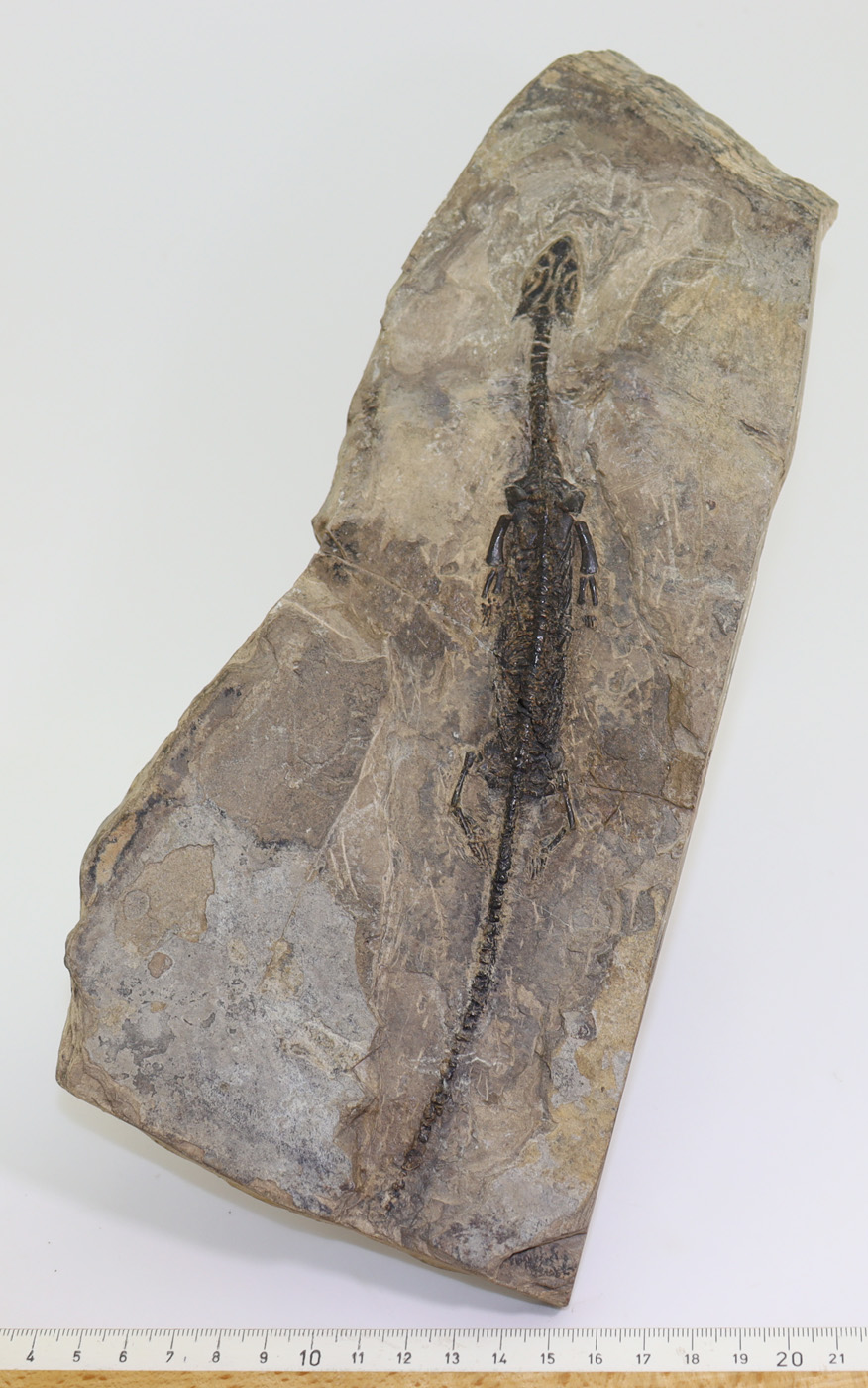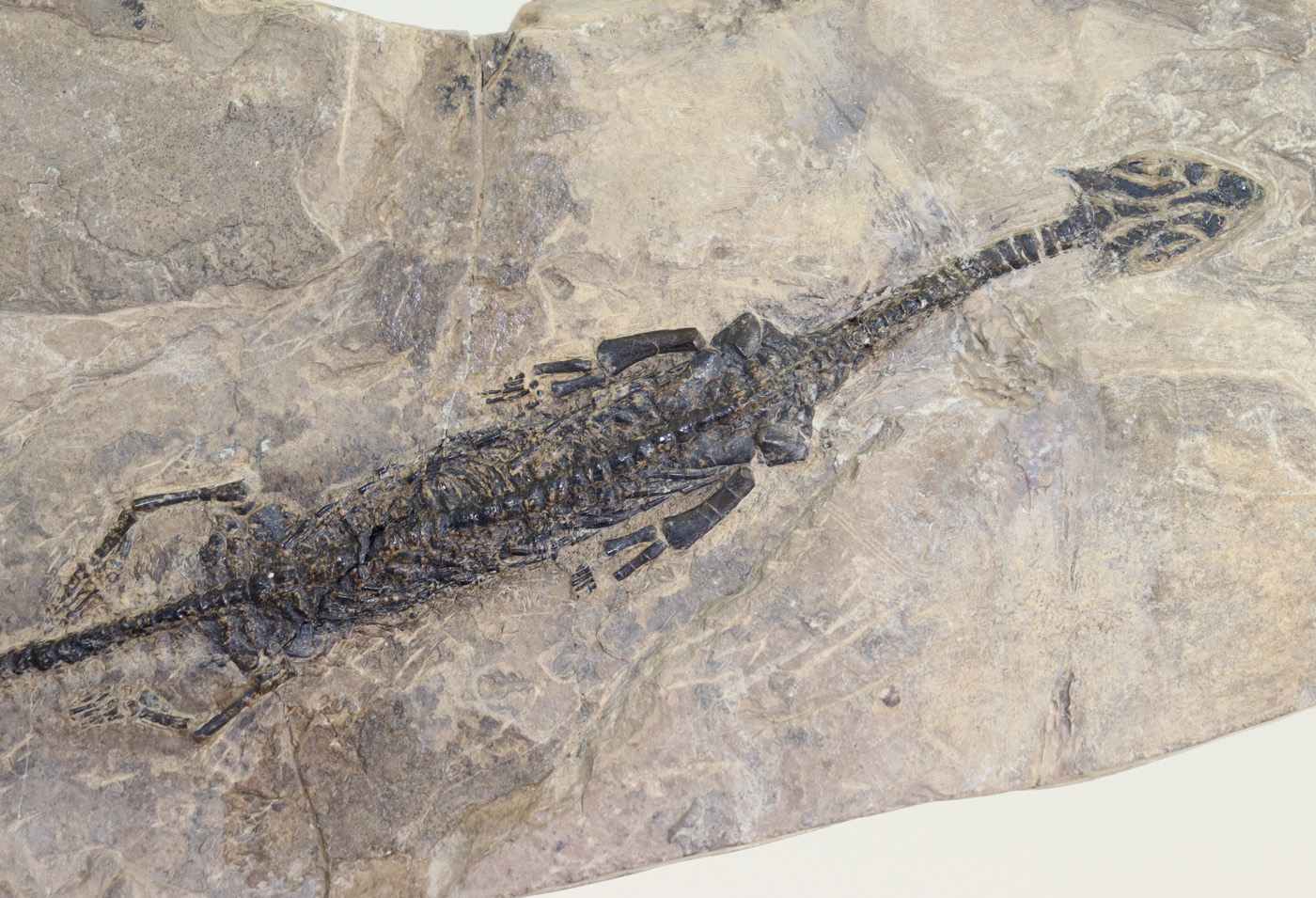 Matrixstück mit einem sehr gut erhaltenen, nahezu kompletten, extrem seltenen marinen Reptils.