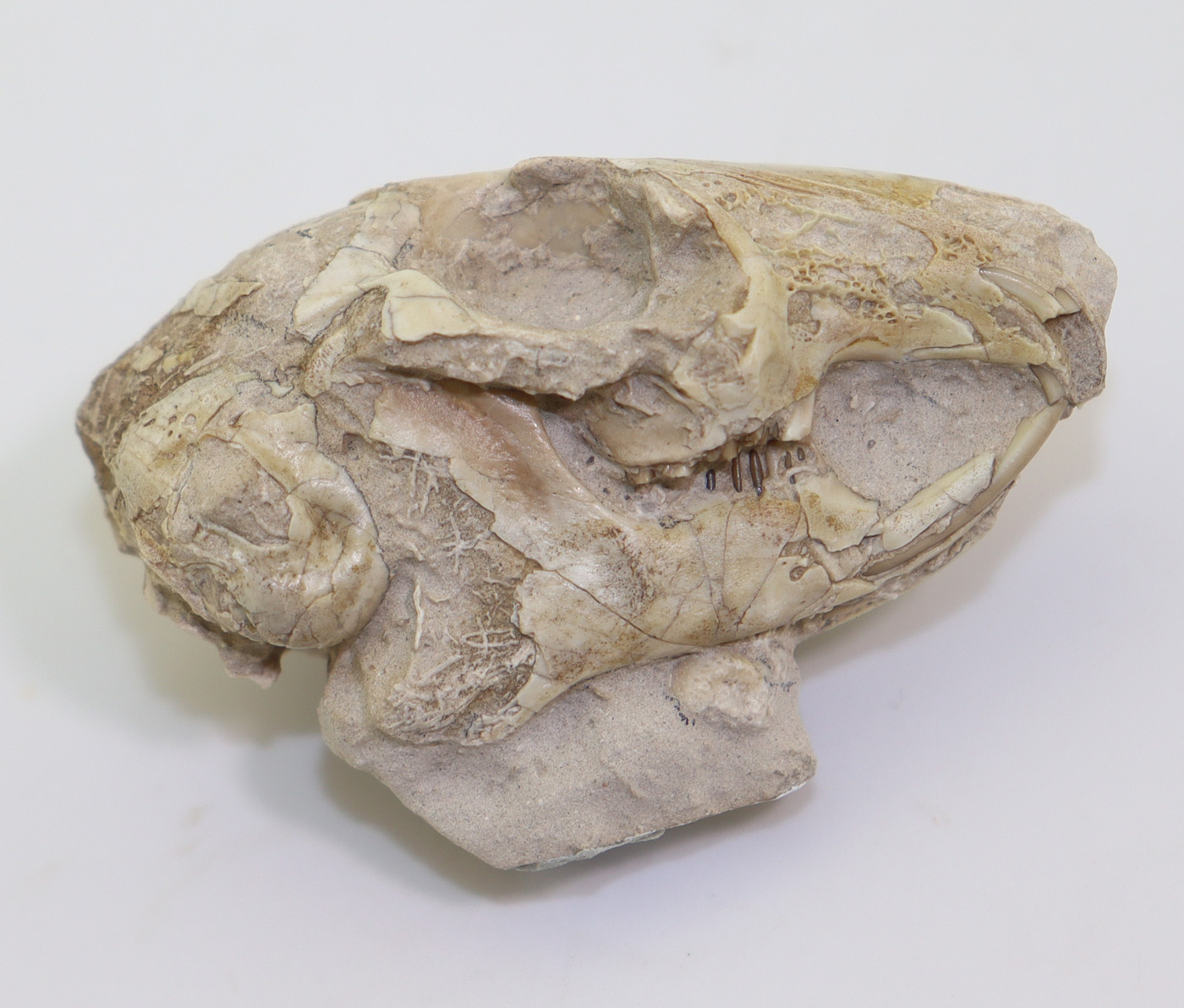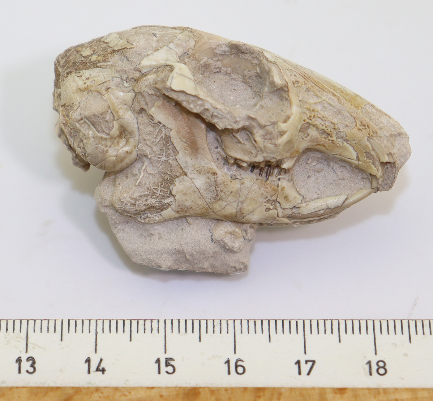 Sehr gut erhaltener Schädels eines kaninchenartigen Nagers.
