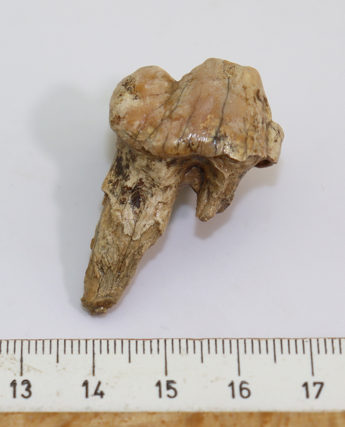 Absolut selten angbeotener Zahn mit Wurzel eines Höhlenlöwens in sehr guter Erhaltung.