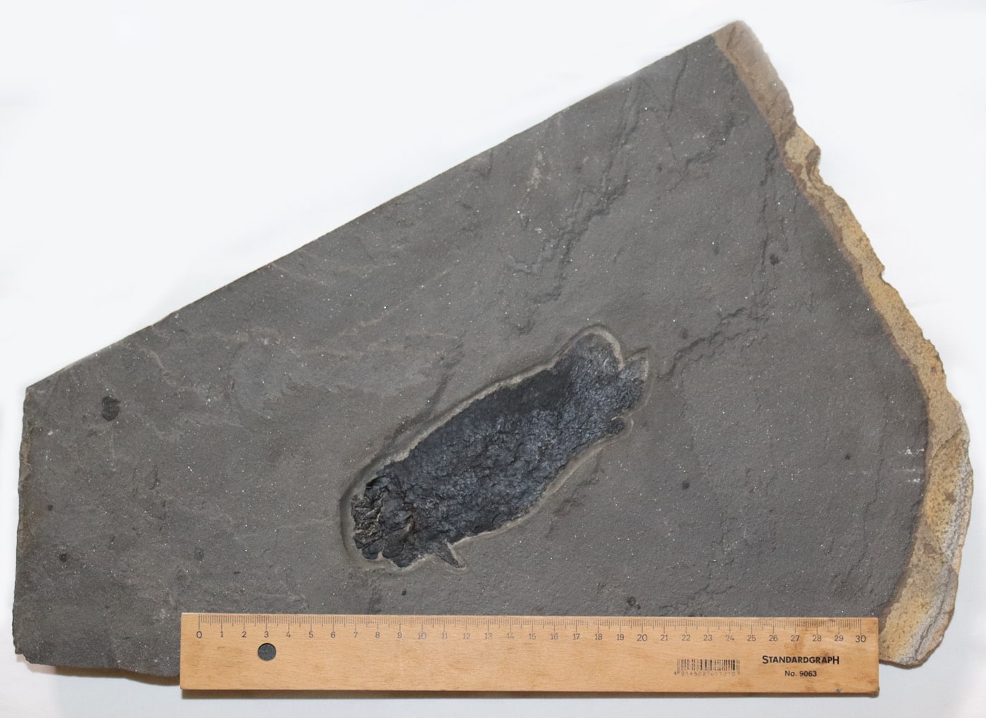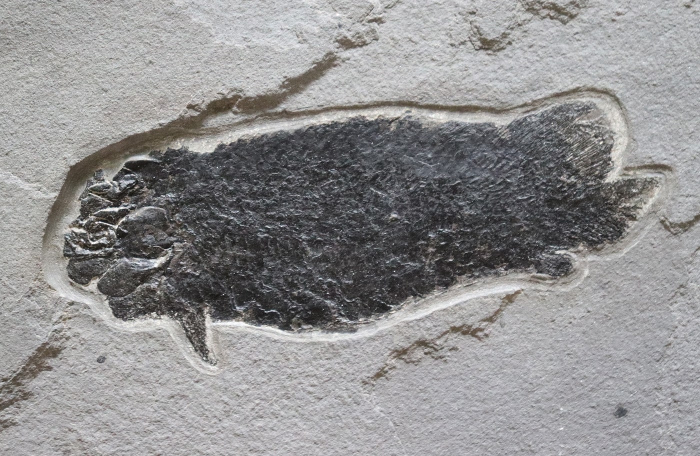 Schönes Matrixstück mit einem sehr gut erhaltenen, extrem seltenen Lappenfisch.