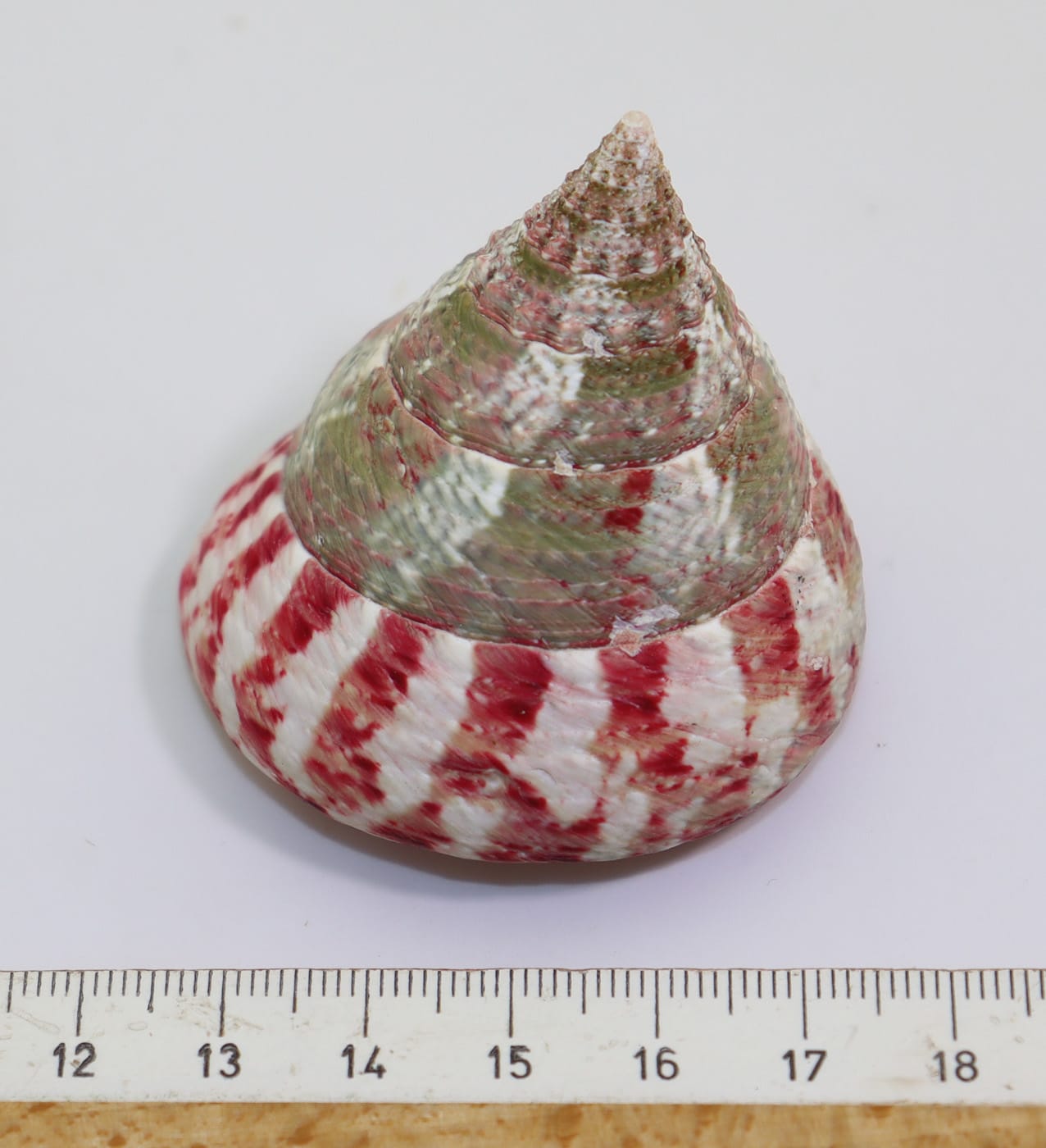 Sehr gut erhaltene schön gezeichnete Erdbeer-Kreiselschnecke.