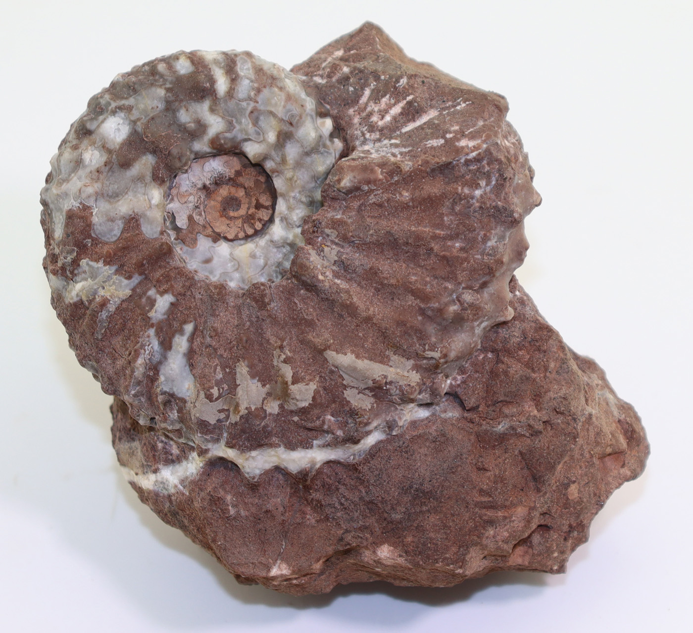 Optisch sehr ansprechender triasischer Altammonit auf ein wenig Matrix.